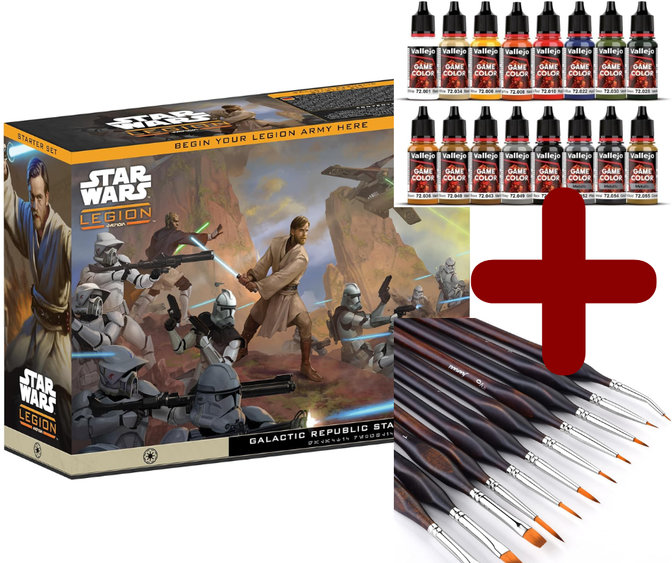 Set de Inicio República + 16 Pinturas marca Vallejo + Pack de 11 Pinceles de miniaturas